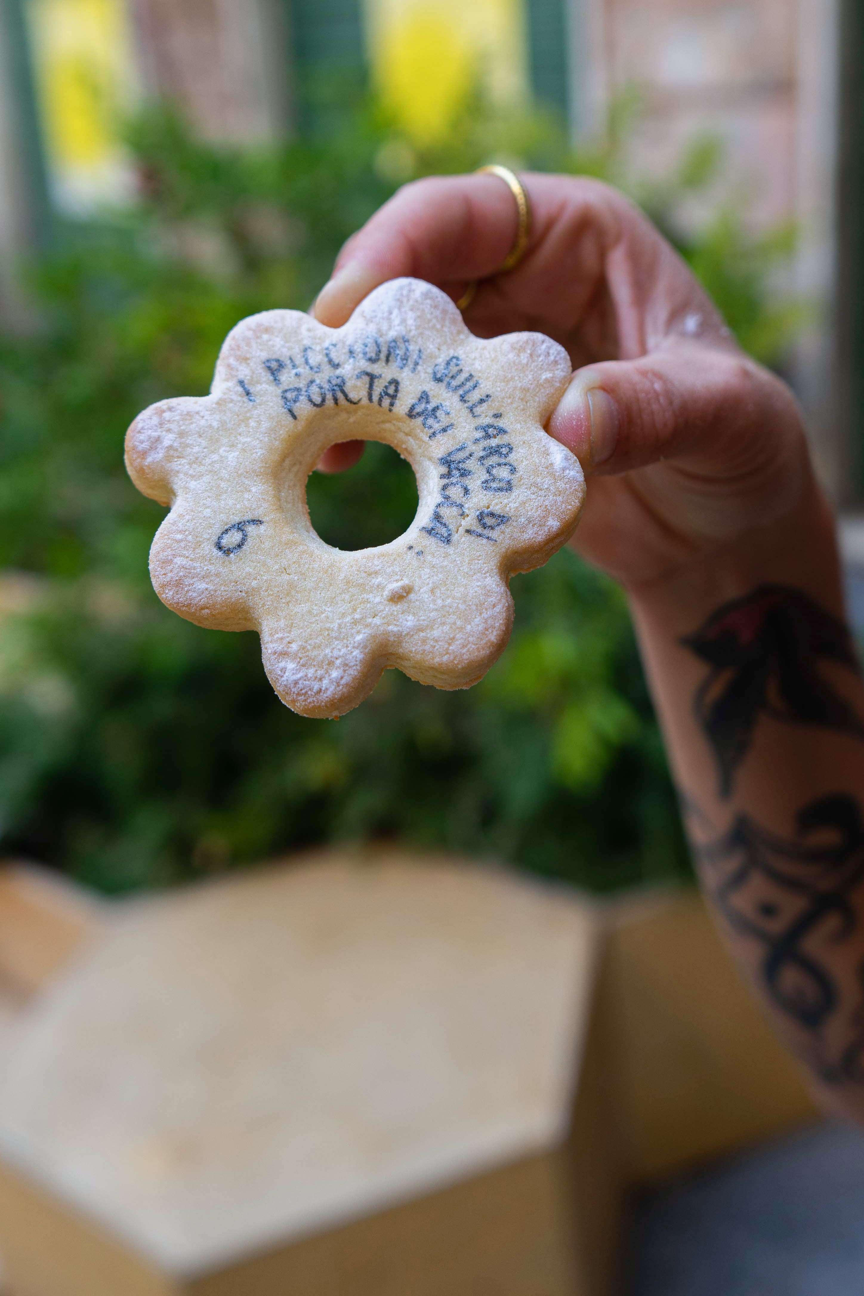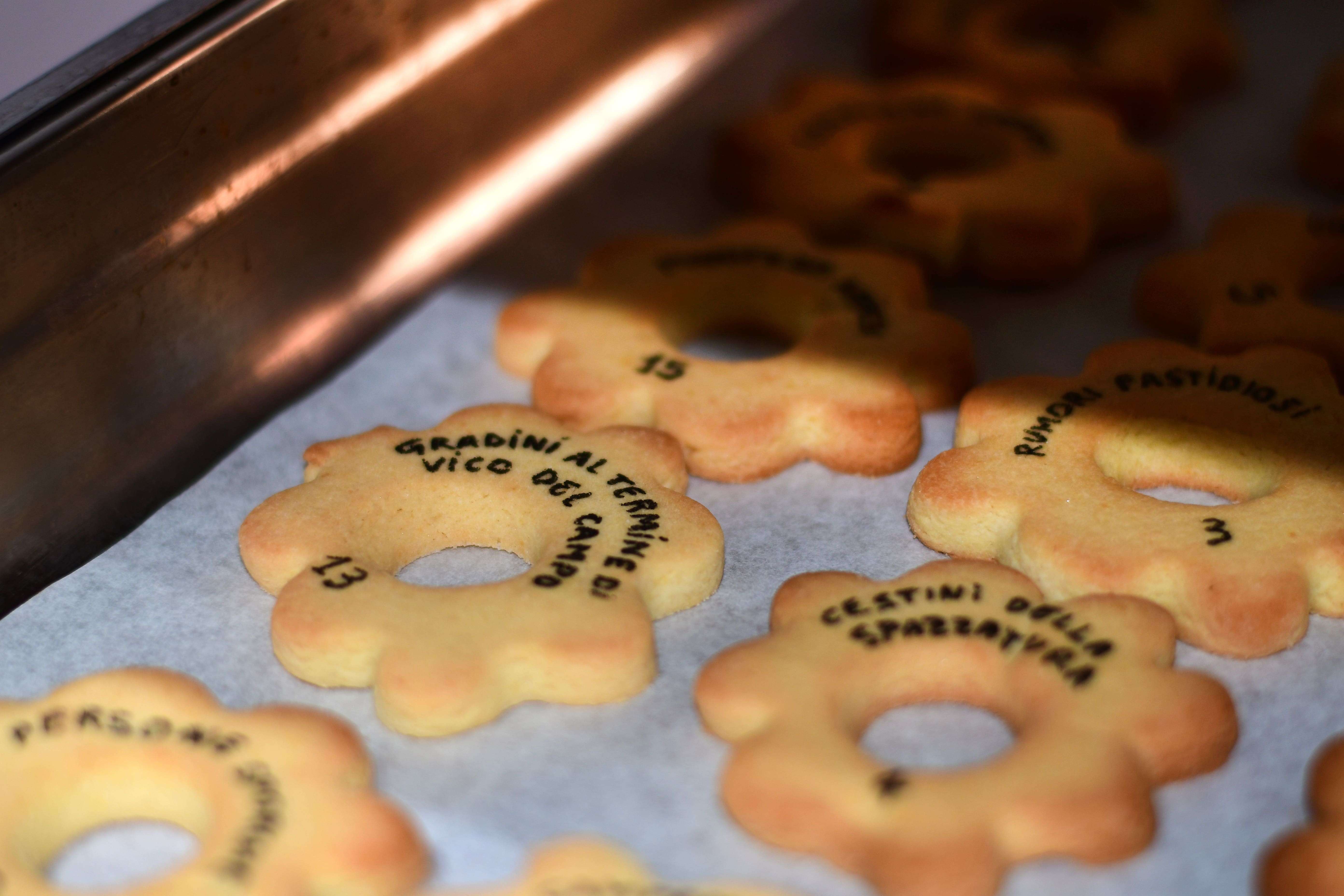 Exquisite biscuits, known and renowned nationwide, are a symbol of popular culture for their simplicity. They were left to cool in canestri(woven baskets) before being offered. Their sale began in churchyards and spread throughout the city, until they became a real 'currency', with their shape engraved on the Genovino d’oro (Genoese ancient coin). Today, thanks to the collaboration with Naima Dolce Forno (via S.Luca 6), we are re-enacting an ancient tradition.During her residency, the artist wandered around and noted down clues, details and elements regarding Via del Campo's environment and community. Now is the moment of exchange, of the magic that unites the territory in a gesture of offering and sharing. Each visitor will receive his or her own special Canestrello and will be invited, before eating, to blow and observe. The surprise is in the details.