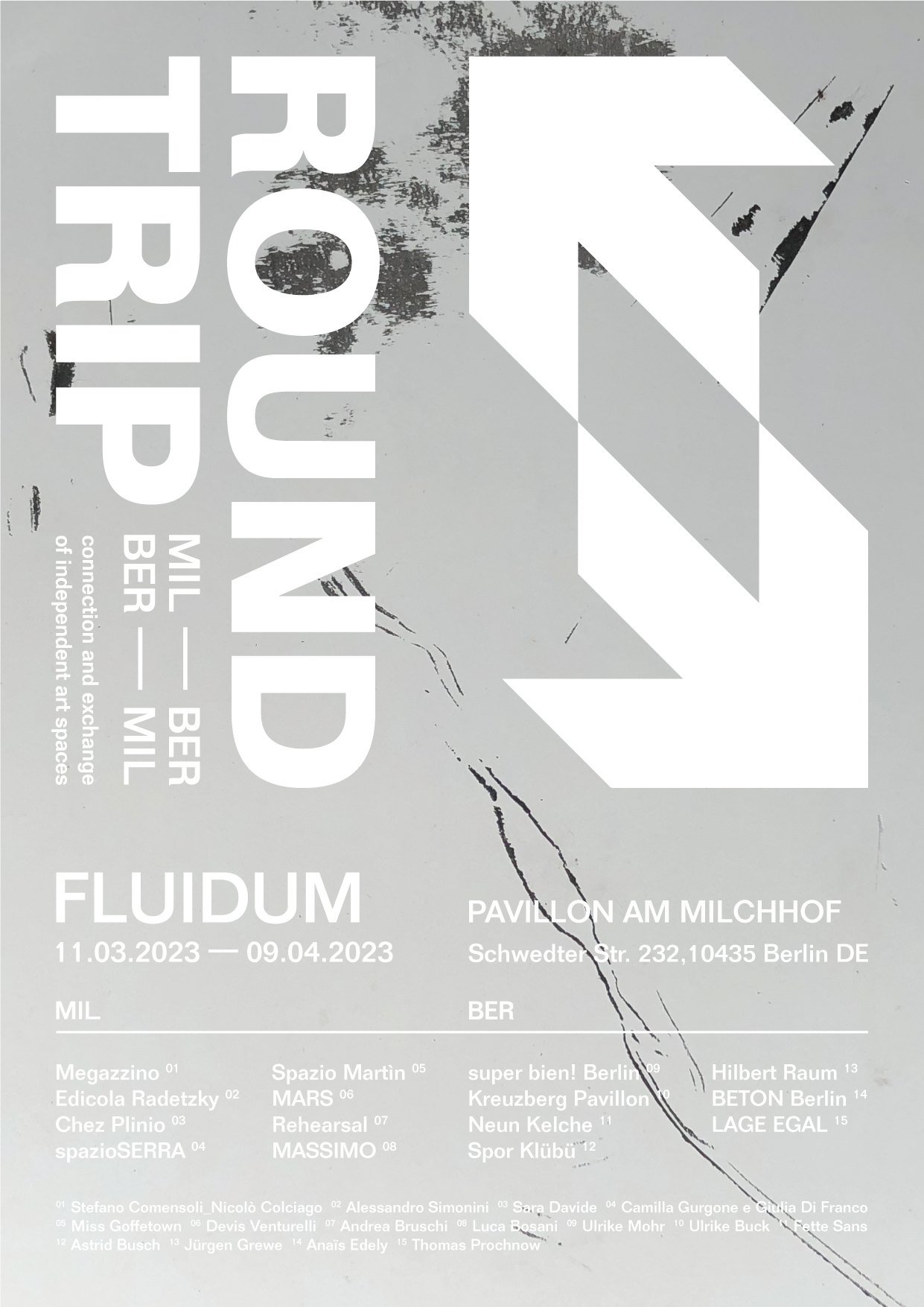 Fifteen independent art spaces from Milan and Berlin were selected for the first ROUND TRIP. Each space invited one artist to present their work in a completely new setup, with works that never co-existed before.